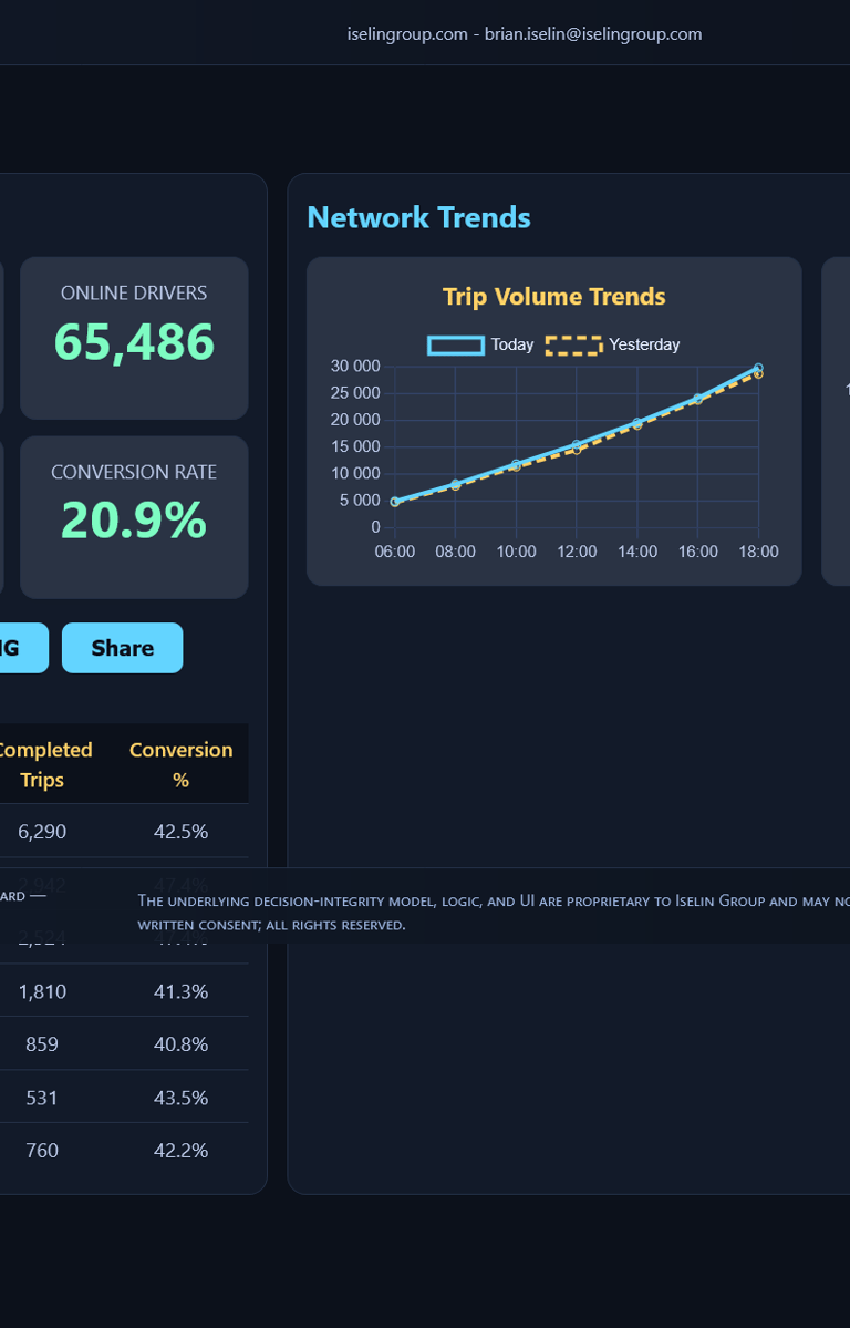 Smart Shift Advisor suggests the best hours and zones based on live demand and events, so drivers spend more minutes paid and fewer dead miles.